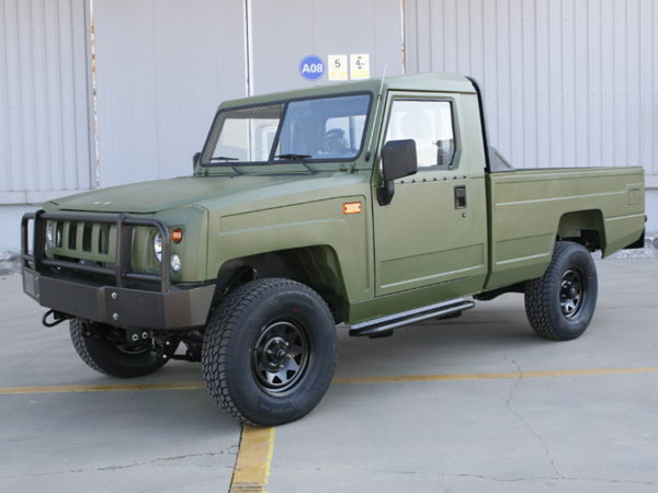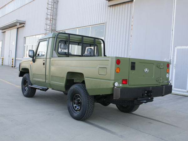 源于勇士二代军车外型,外观威猛霸气,标配分时四驱,采用全封闭多盘湿式制动器,安全可靠,操作灵活,乘员2人,单排皮卡货箱,主要用于维修工具、器材物料的辅助运输,提升生产效率。